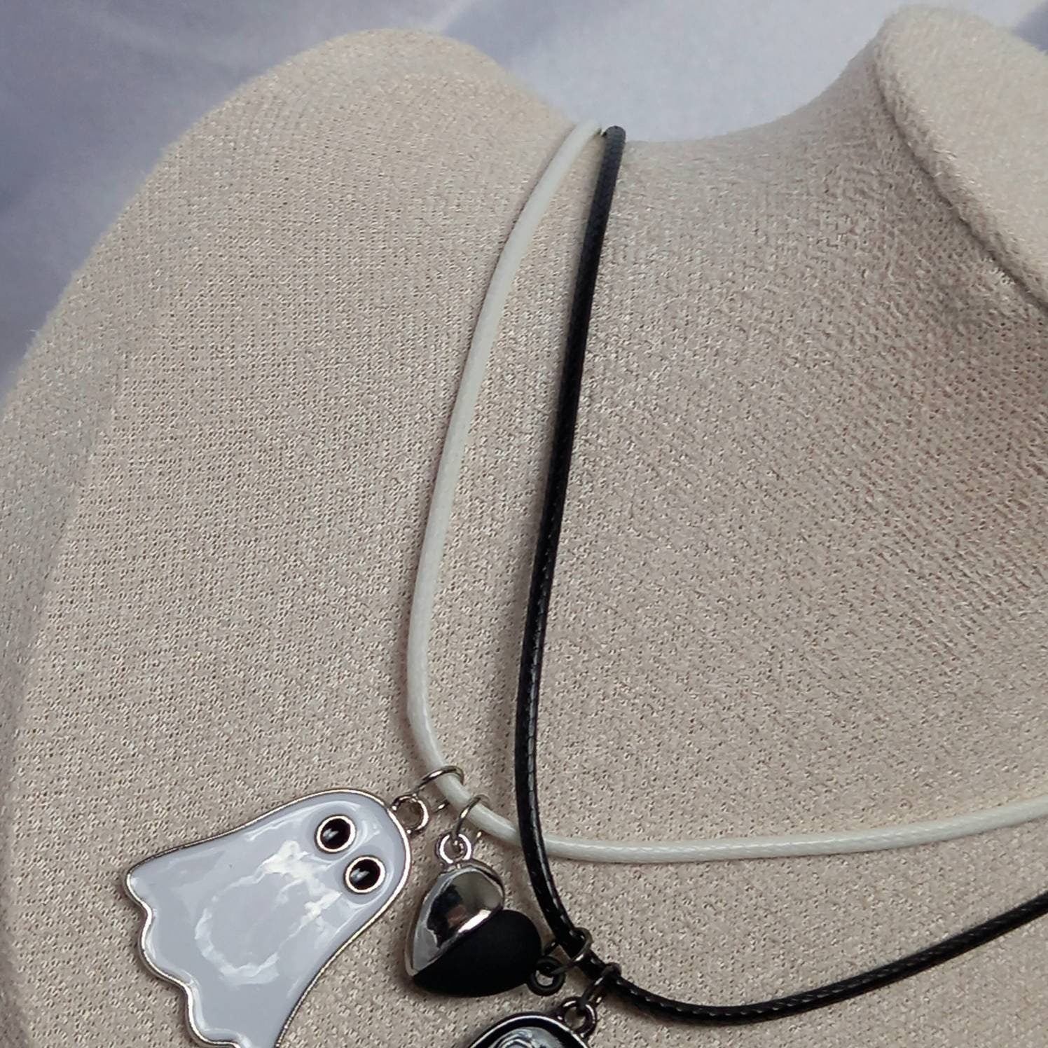 Don't miss out on this beautiful 2 piece ghost friendship necklace set to show you bestie you are always connected.