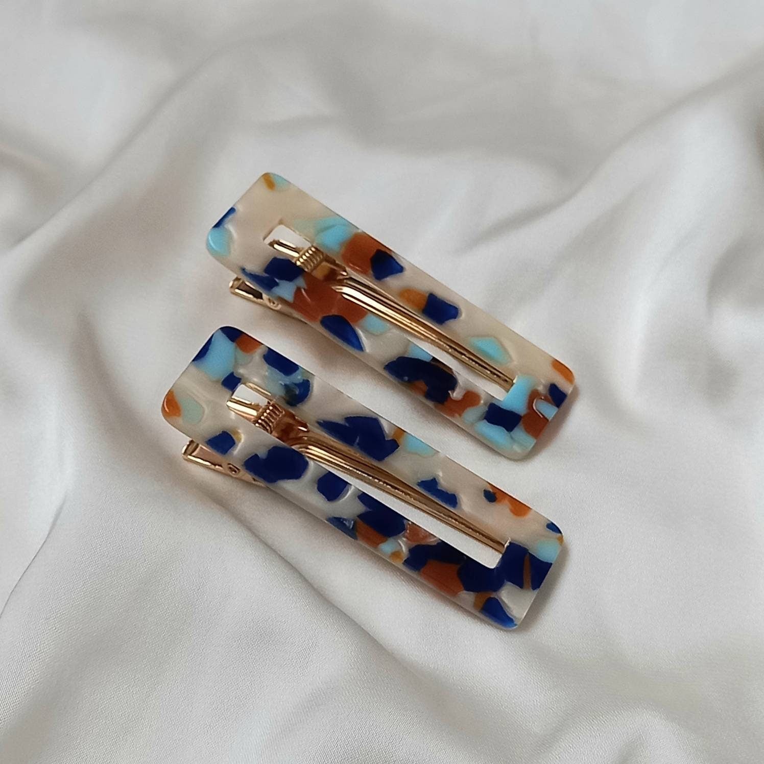 2 Retro Hair Clips - Hair Clip In The UK,Funky Hair,70's Accessories,Minimalistic Hair Clips,Neutral,Speckled Hair Clips,Blue & Orange