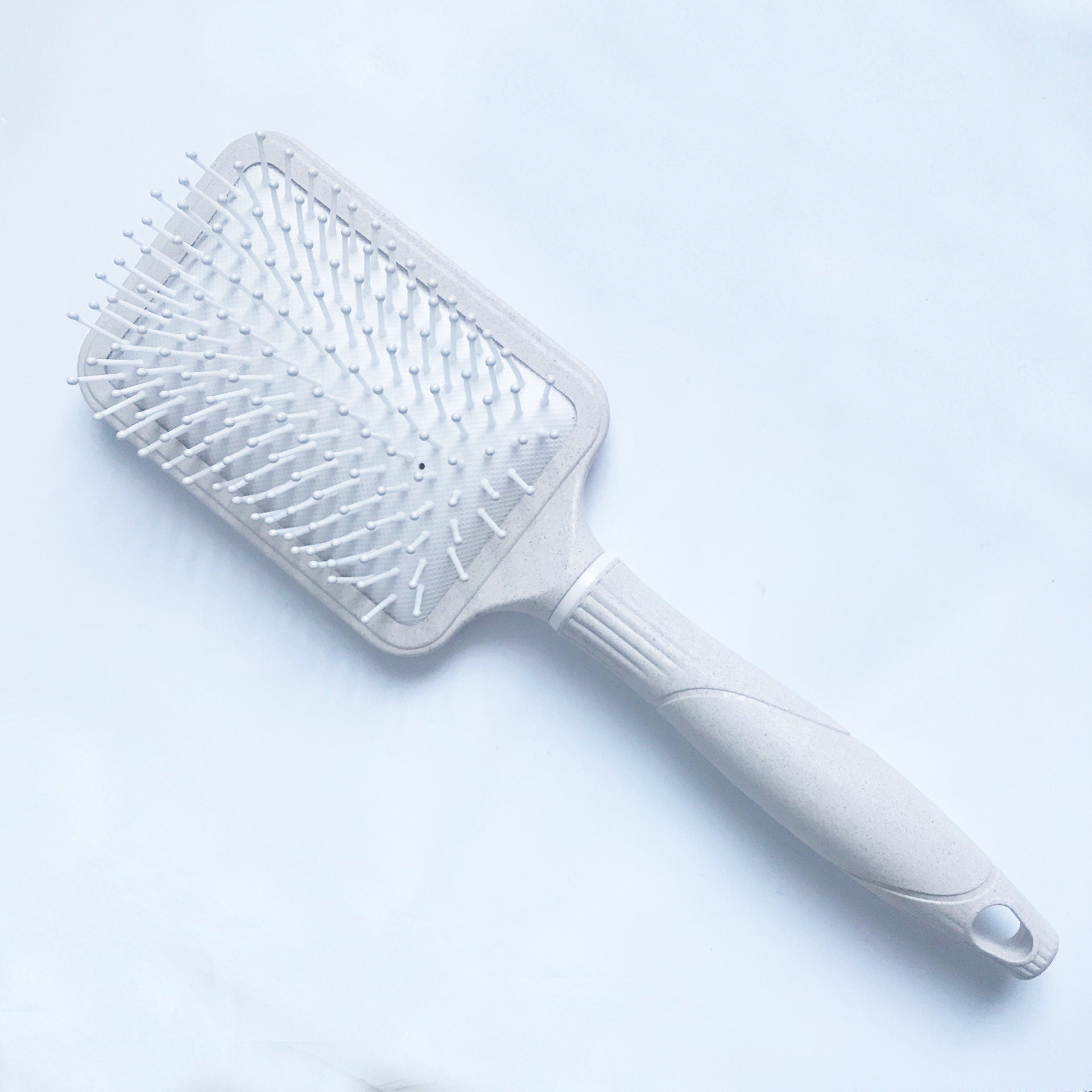 Our Wheat Straw hair brushes have an eco friendly paddle brush design with a vented cushion base. The base keeps air pressure balanced and allows air flow for daily massages with the brush stimulating hair growth. The bristles are gentle and durable they massage the scalp and simulate blood flowwhich results in healthier hair.