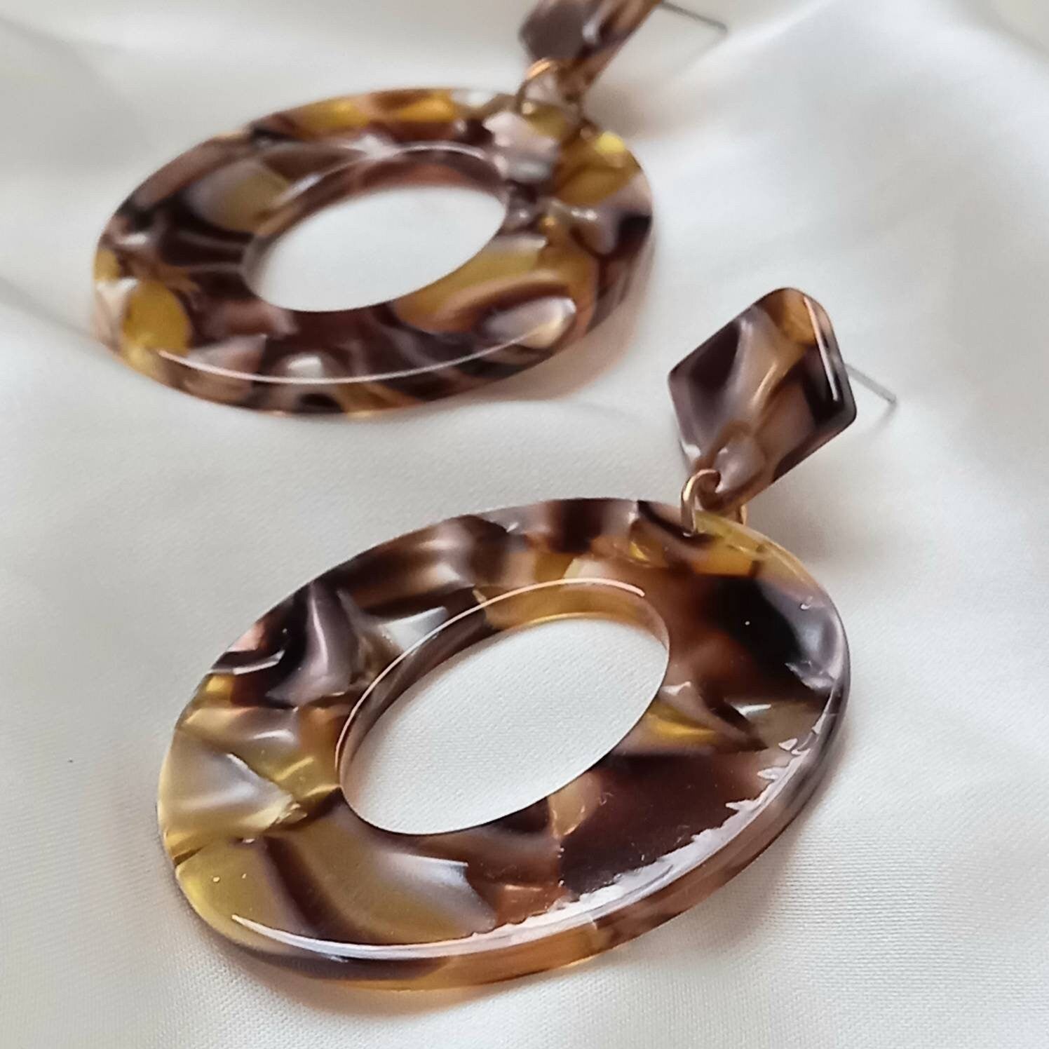 Brown Resin Drop Earrings - Brown Earrings, Brown Jewellery, Orange Earrings, Retro Earrings, Chunky Earrings, Gold Earrings,Resin Earrings