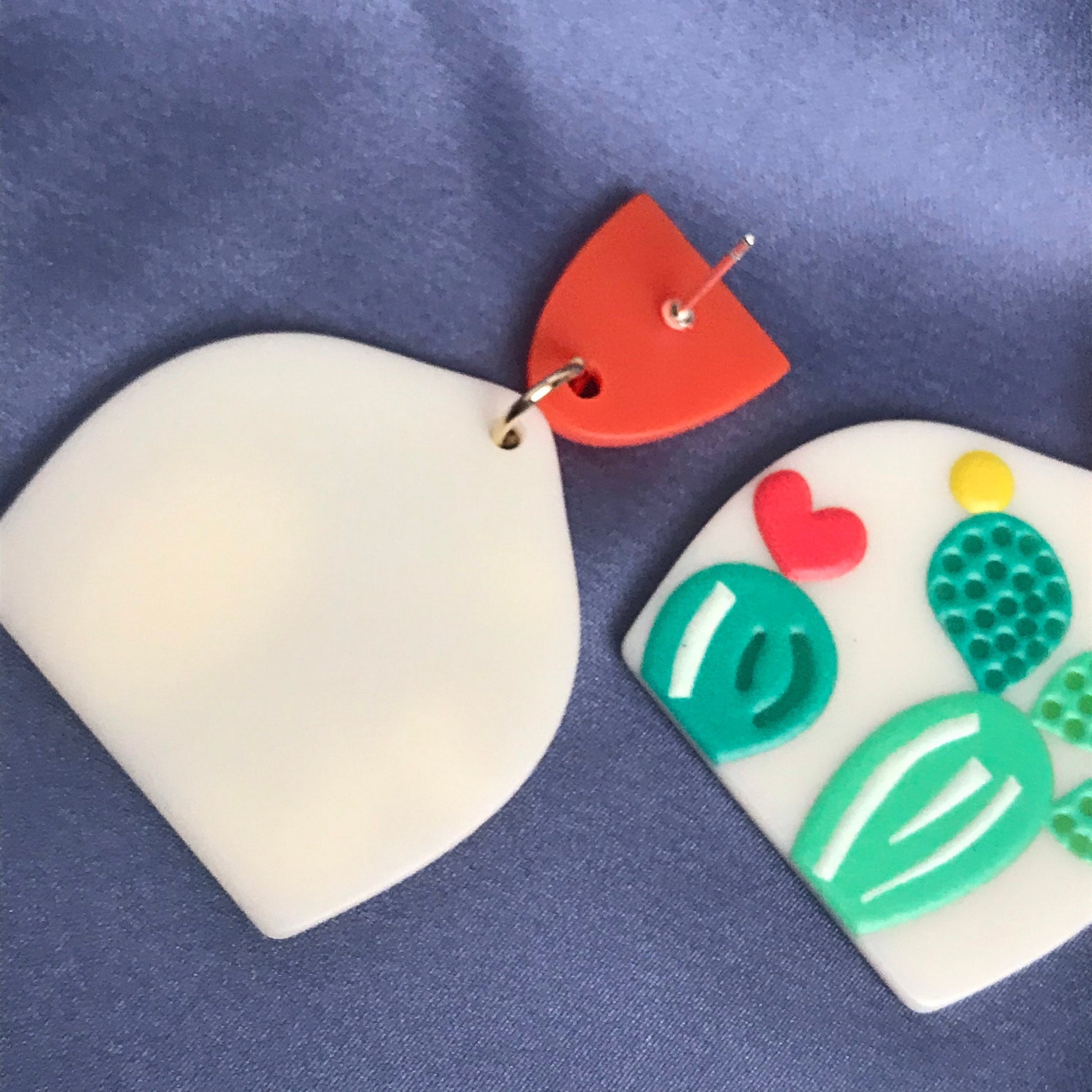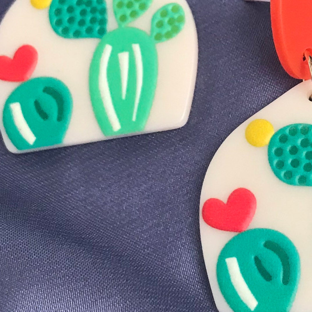 Cactus Drop Earrings - Hanging Jewellery, Accessories,Cactus Earrings,Cactus Jewlellery,Pink Flower Earrings,Green Cactus,Statement Earrings