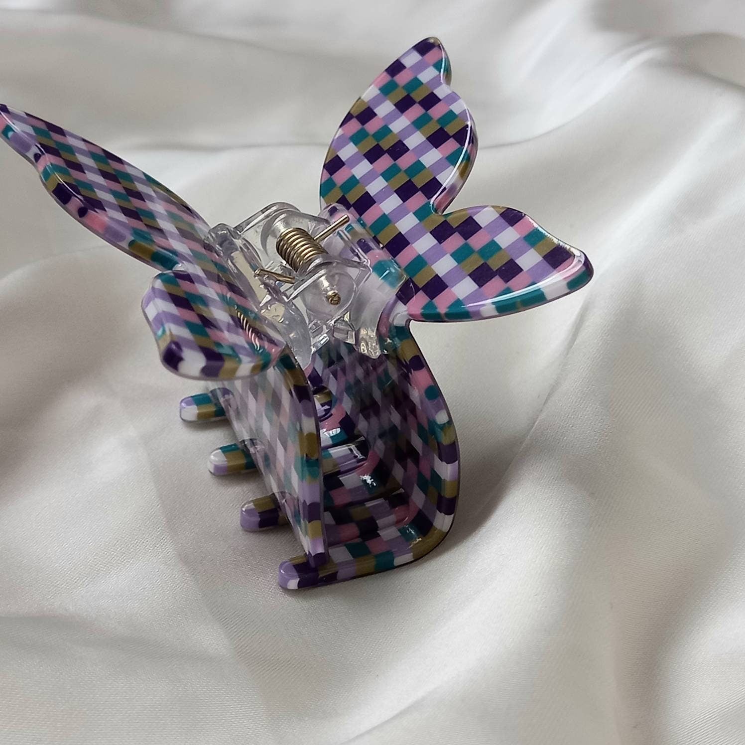 Checkered Retro Butterfly Hair Clip - Pink Hair Clip, Funky Hair Clip, 70's Accessories, Blue Hair Claw, Checkered Hair Clips In The UK