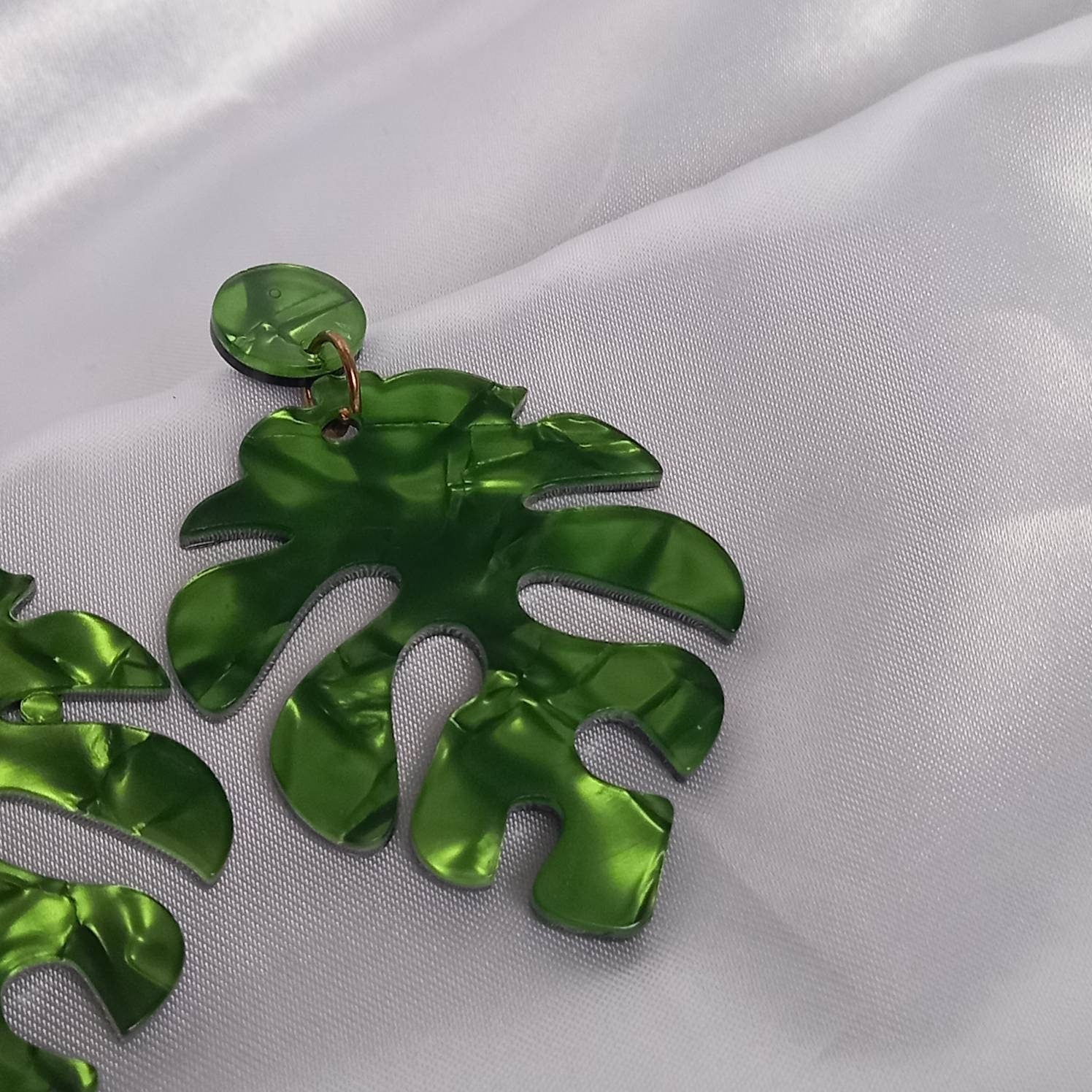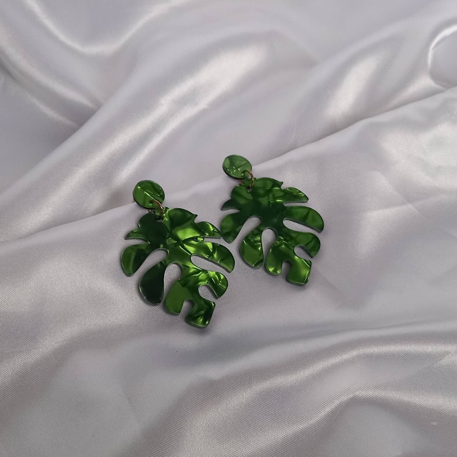 Chunky Green Leaf Drop Earrings - Green Earrings In The UK,Tropical Earrings,Leaf Jewellery In The UK,Chunky Earrings,Green Resin Earrings