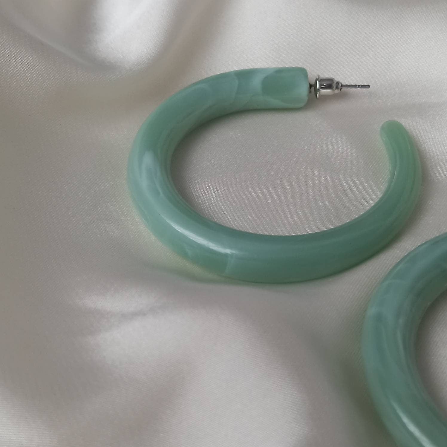 Chunky Green Resin Hoop Earrings - Resin Earrings, Chunky Hoop Earrings, Thick Resin Earrings, Earrings In The UK, Hoop Earrings In The UK