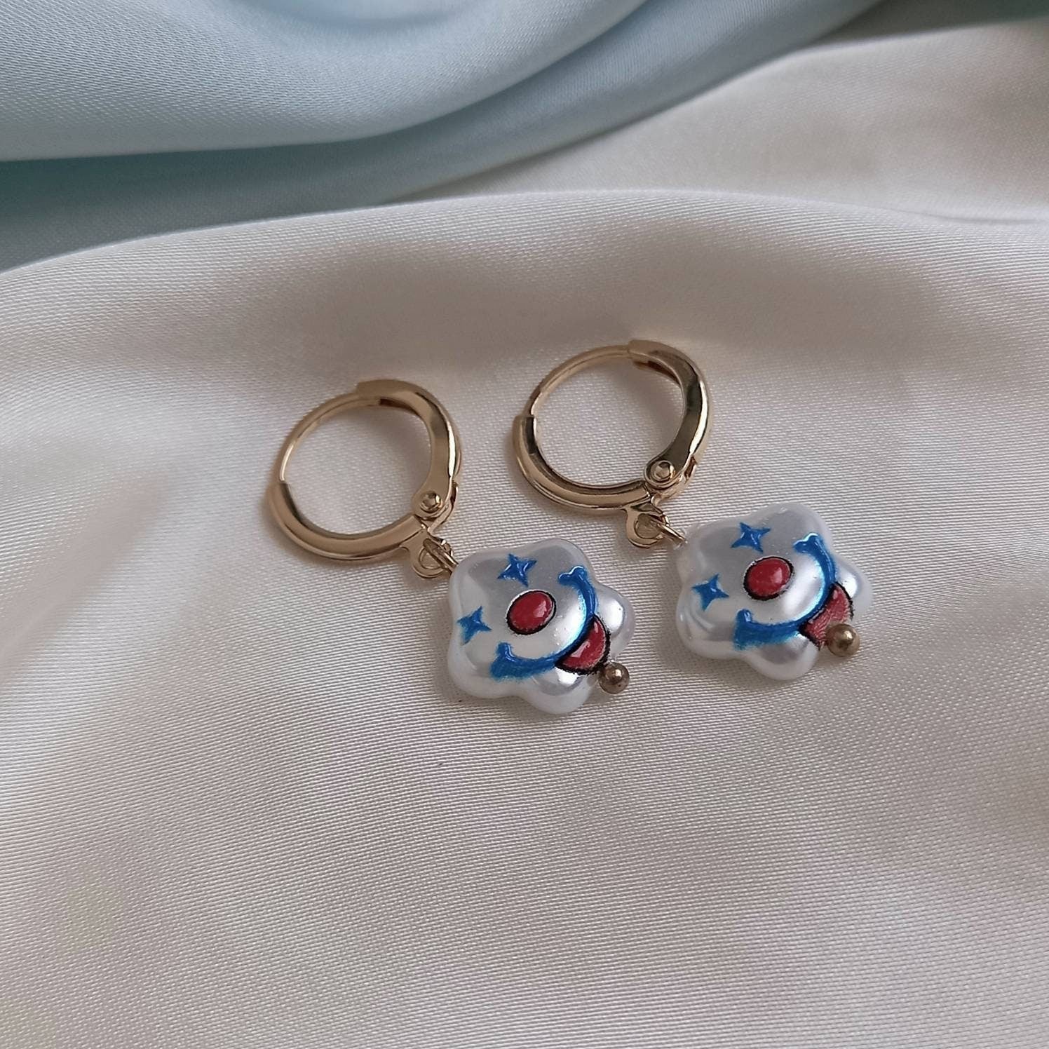Faux Pearl Face Drop Earrings - Pearl Earrings, Gold Earrings, Face Earrings, Small Drop Earrings, White Jewellery, Pearl Earrings In The UK