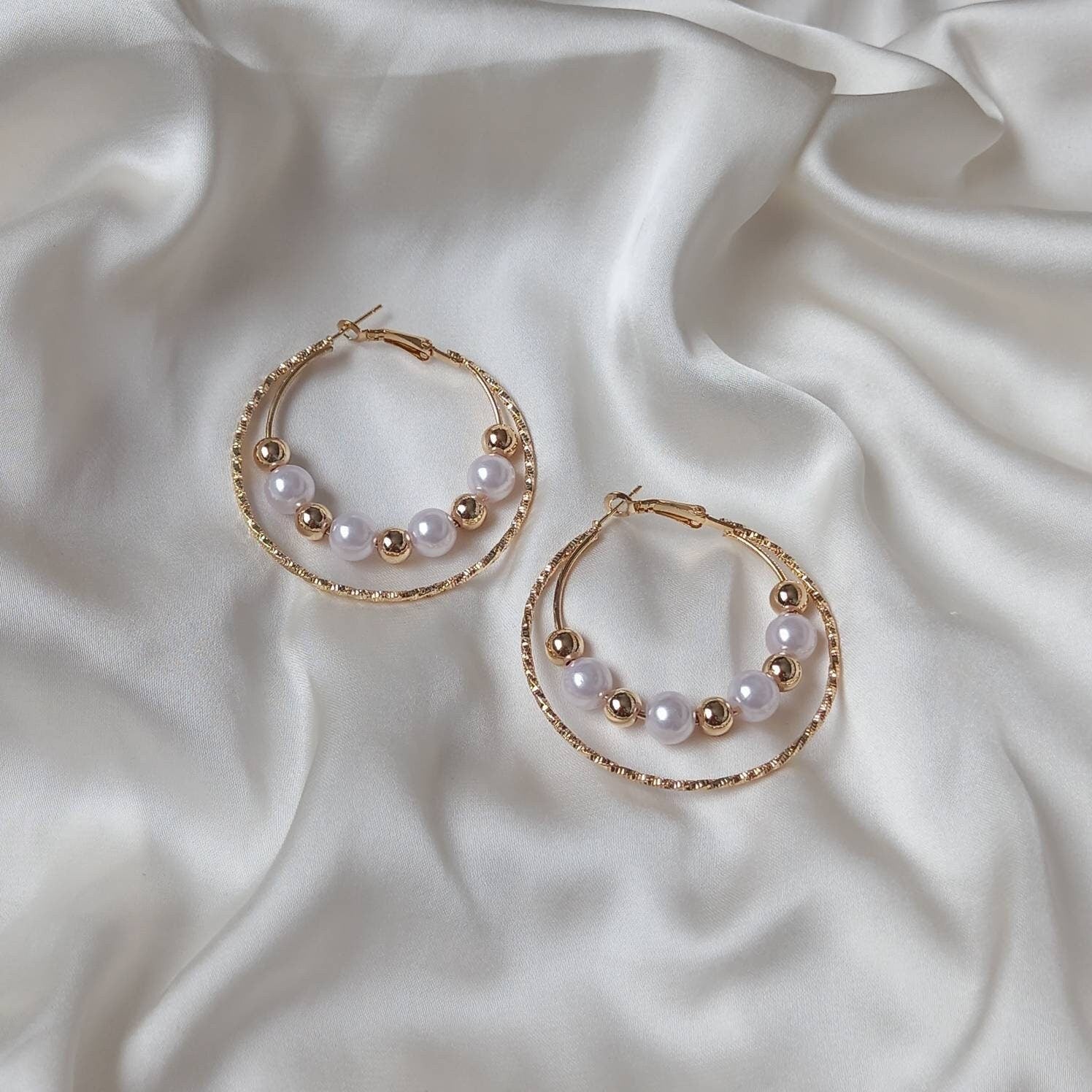 Faux Pearl Hoop Earrings - Pearl Jewellery, Pearl Earrings, Gold Bead Earrings, Hoop Earrings In The UK, Cute Earrings, Pearl Jewellery