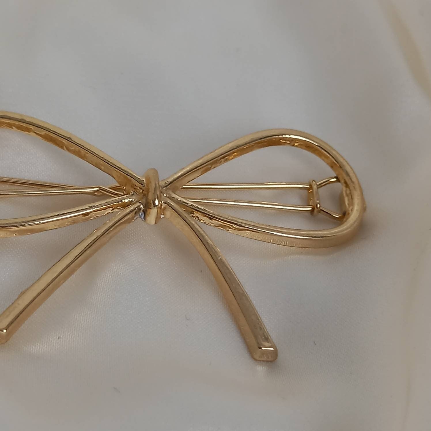 Don't miss out on this gold bow hair pin. It works with a large variety of looks and add a bit of sparkle to your hair.