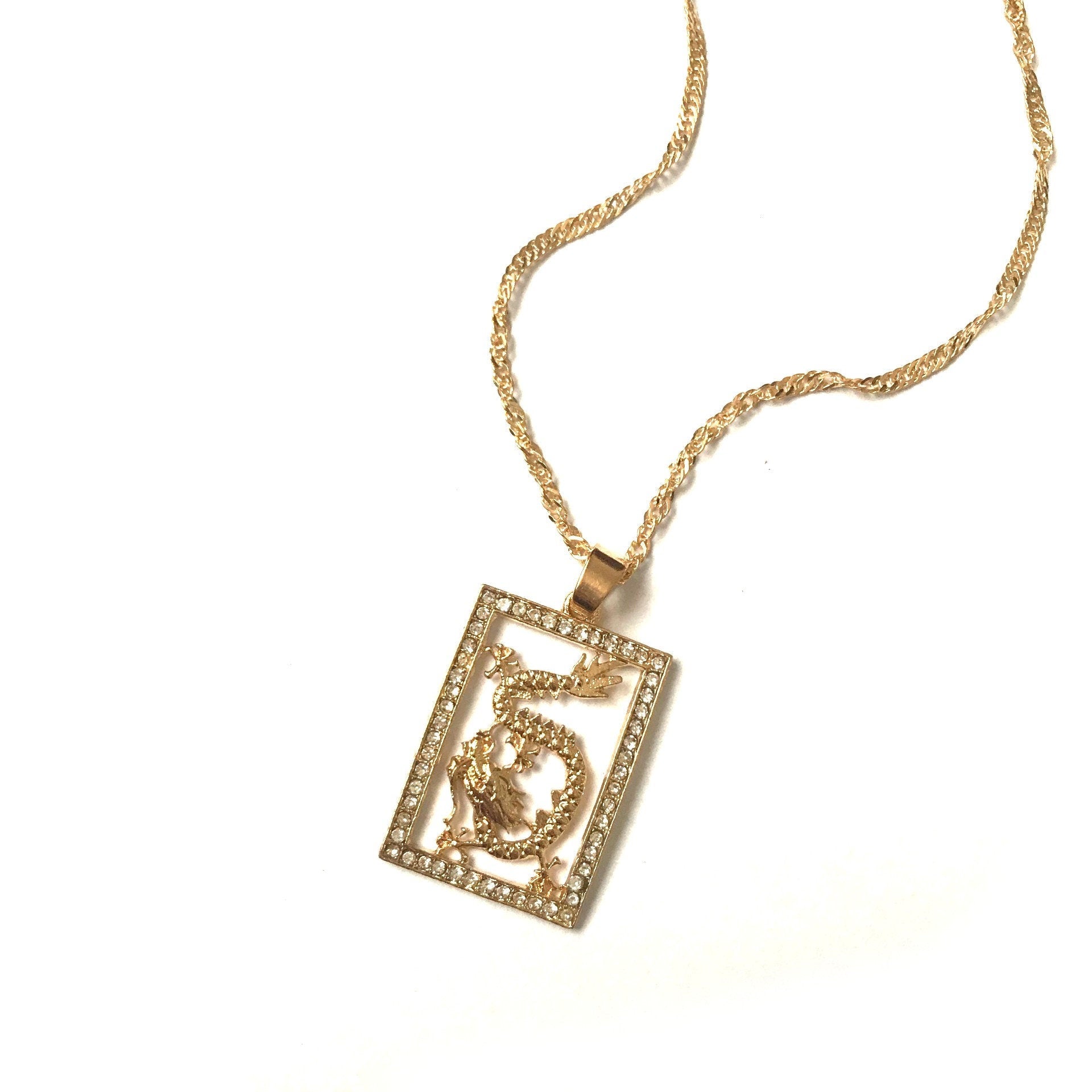 Don't miss out on this beautiful gold dragon pendant necklace. It works with a large variety of looks and add a bit of sparkle to your outfit.
