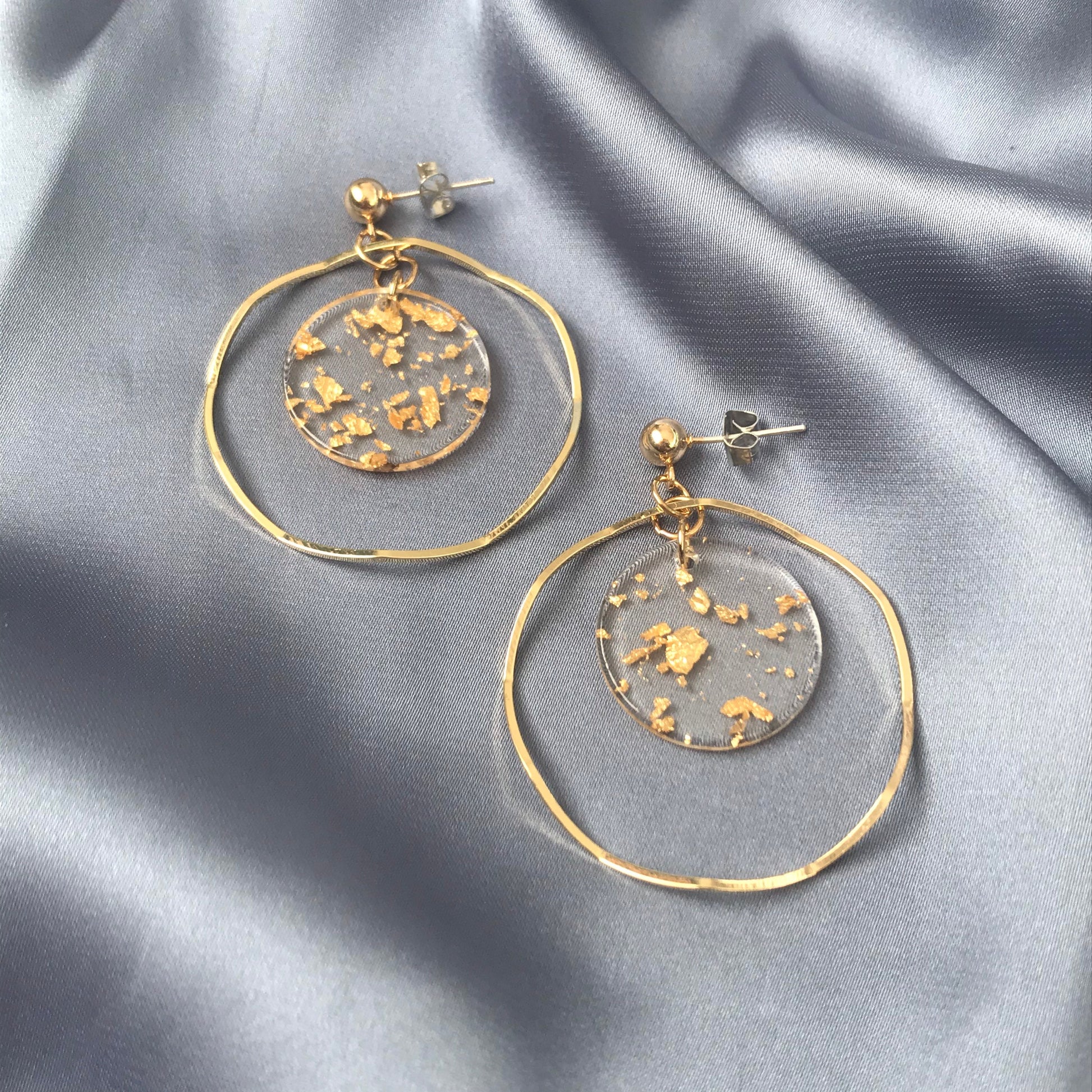 Gold Resin Drop Earrings - Hanging Jewellery,Accessories,Gold Jewellery,Gold Earrings, Resin Earrings, Gold Resin, Gold Hoop Earrings