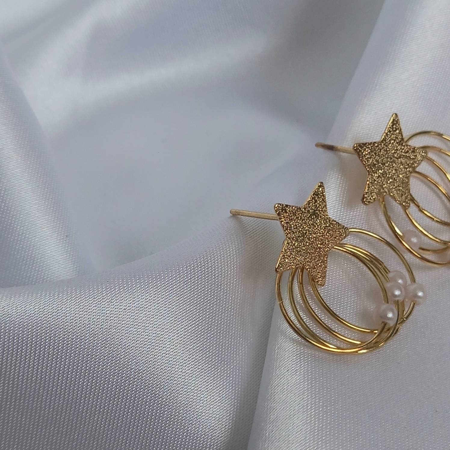 Don't miss out on these beautiful gold star stud drop earrings. They work with a large variety of looks and add a bit of sparkle to your outfit.