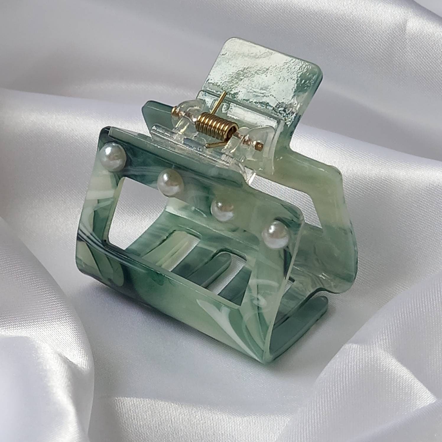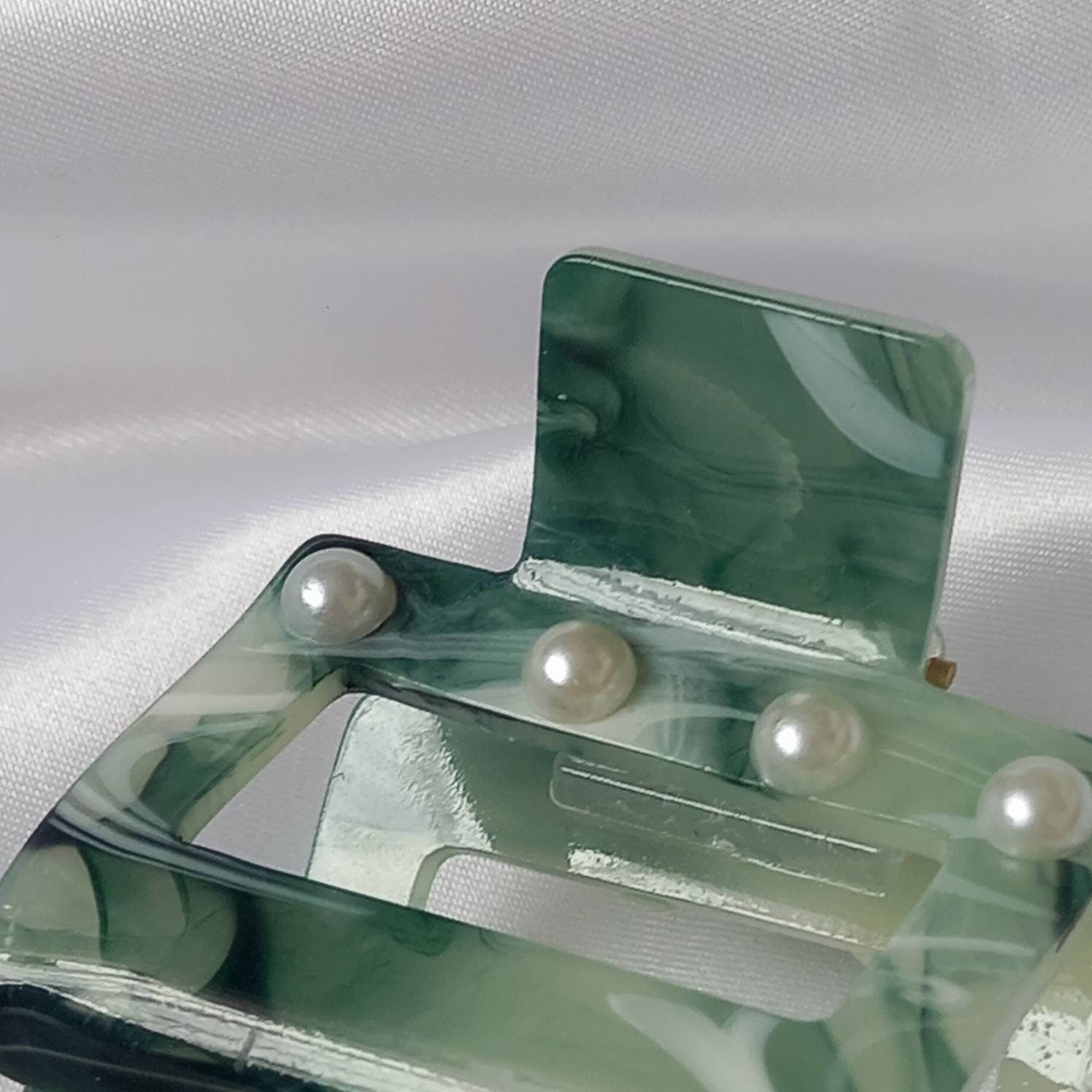 Green Pearl Hair Clamp- Hair Clip,Green Hair Accessories,Green Hair Claw,Minimalistic Hair Clips,Funky Hair Clip,Green Hair Clips In The UK
