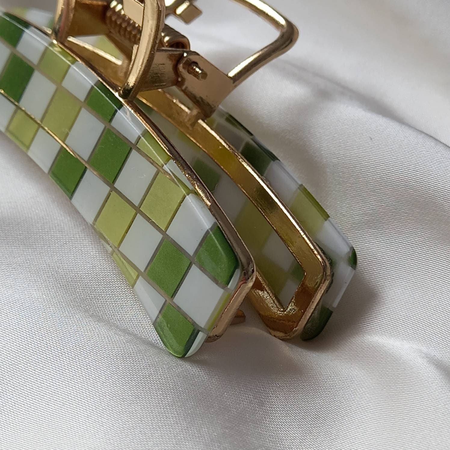 Green & White Retro Hair Clip - Green Hair Clip, Funky Hair Clip, 70's Accessories, Vintage Style Hair Clip, Green Hair Claw,White Hair Clip