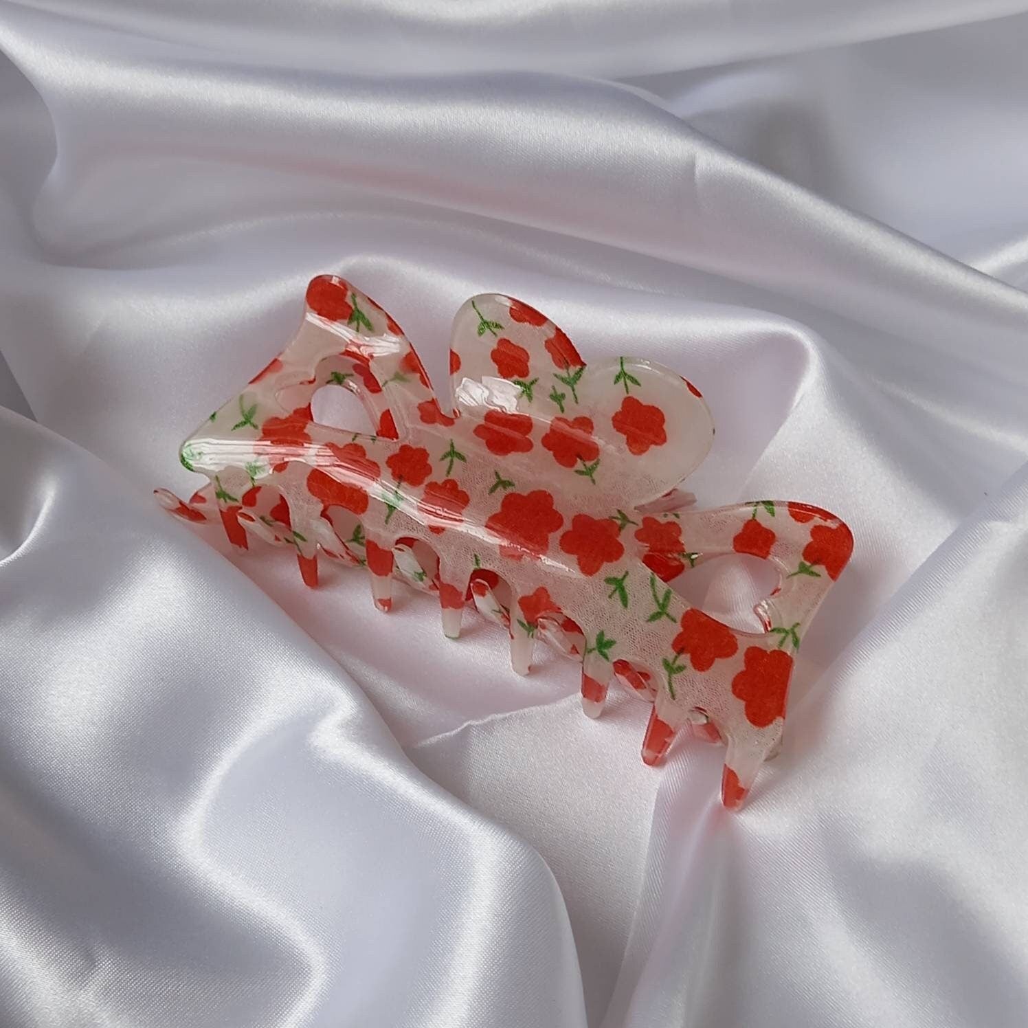 Large Red Flower Hair Claw- Red Hair Clip,Red Hair Accessories,Red Hair Claw,Flower Hair Clips,Funky Hair Clip,Red Hair Clips In The UK