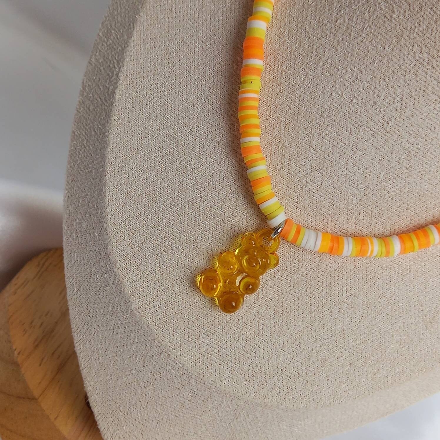 Don't miss out on this beautiful beaded gummy bear necklace. It works with a large variety of looks and add a bit of sparkle to your outfit.
