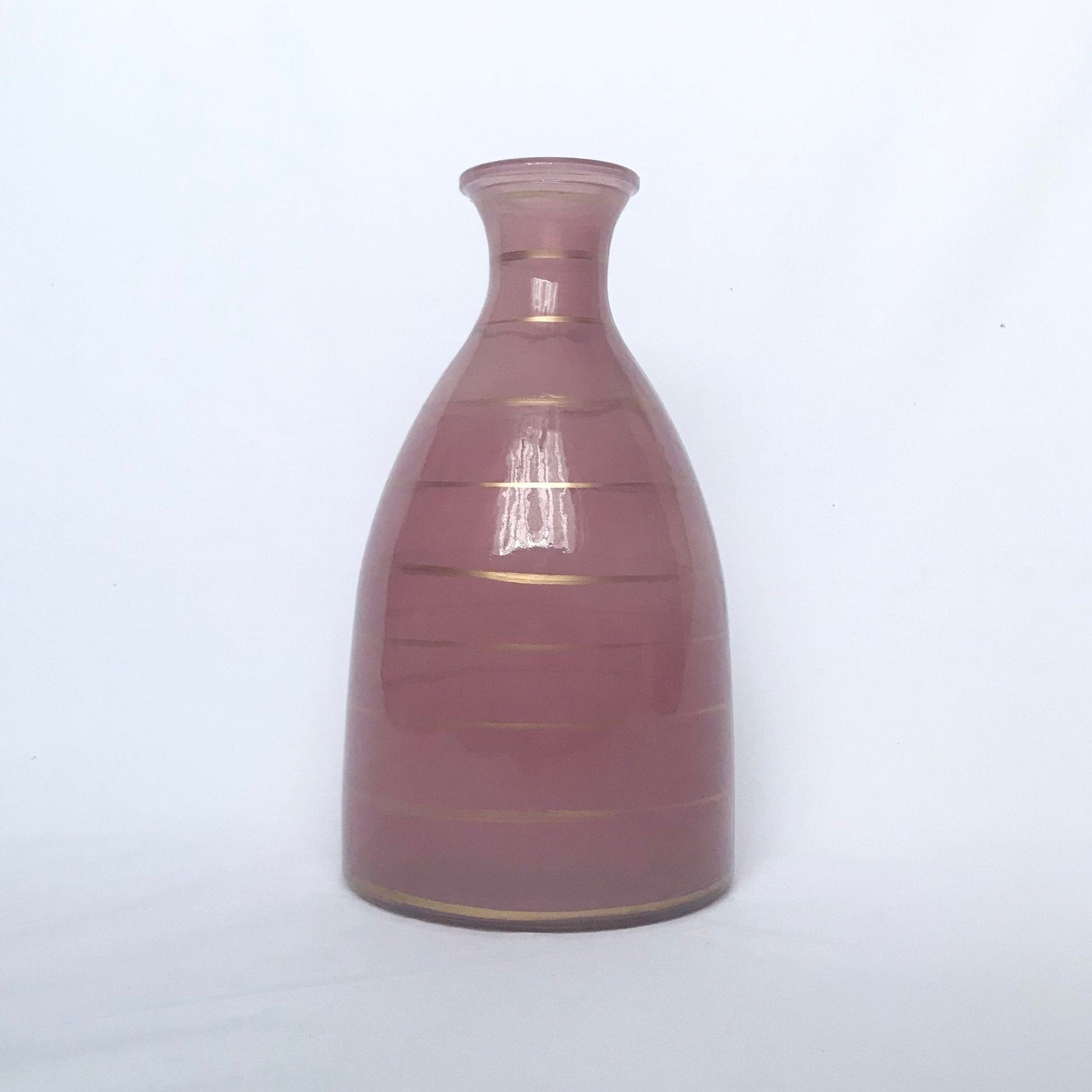 Pink Glass Vase With Gold Stripes - Decorative Bottle, Art Deco Style, Gift, Glassware, Flower Arranging, Homeware, Flowers, geometric