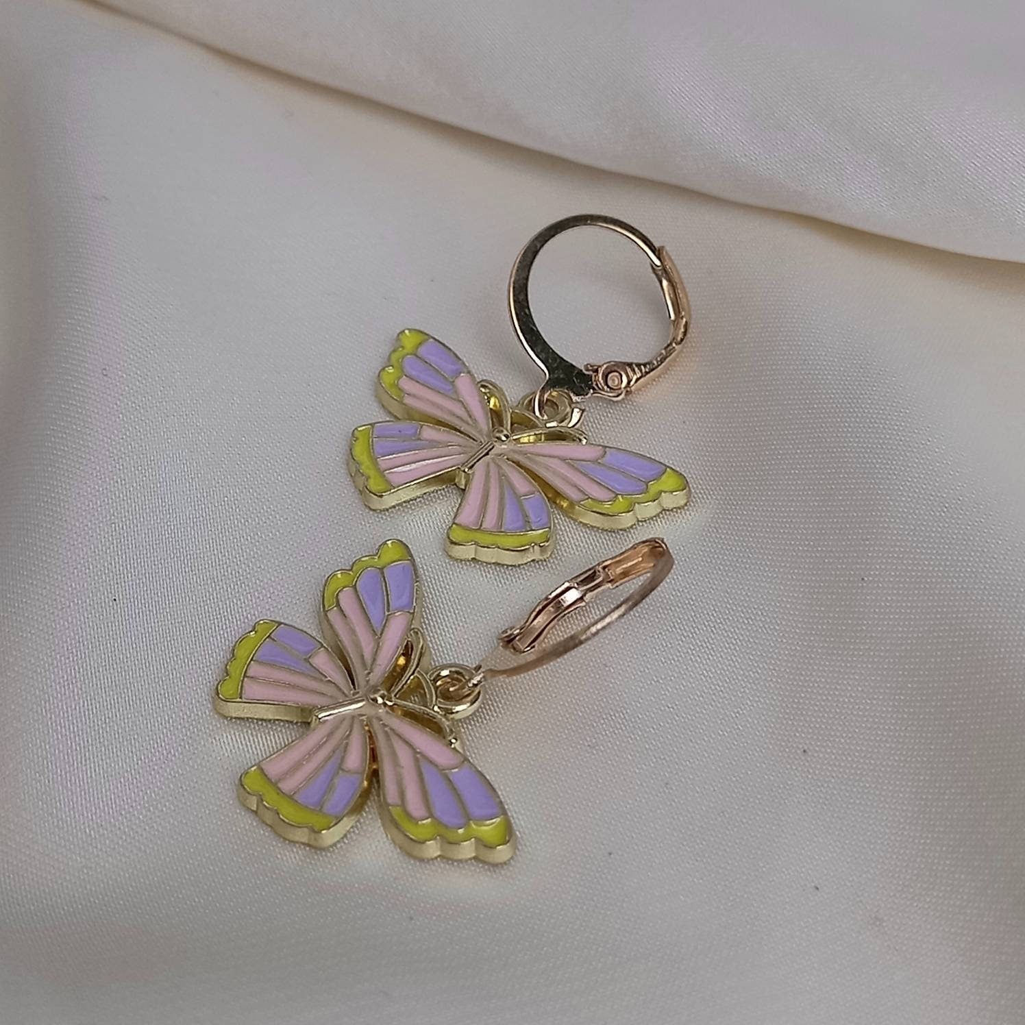Pink & Yellow Butterfly Drop Earrings - Lightweight Drop Earrings,Purple Butterfly Earrings,Cute Earrings,Earrings In The UK,Pink Jewellery
