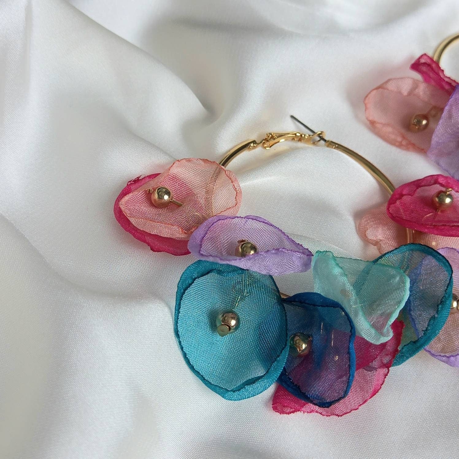 Rainbow Flower Hoop Earrings - Lightweight Hoop Earrings,Flower Earrings,Hoop Earrings,Cute Earrings,Flower Jewellery In The UK, Colourful