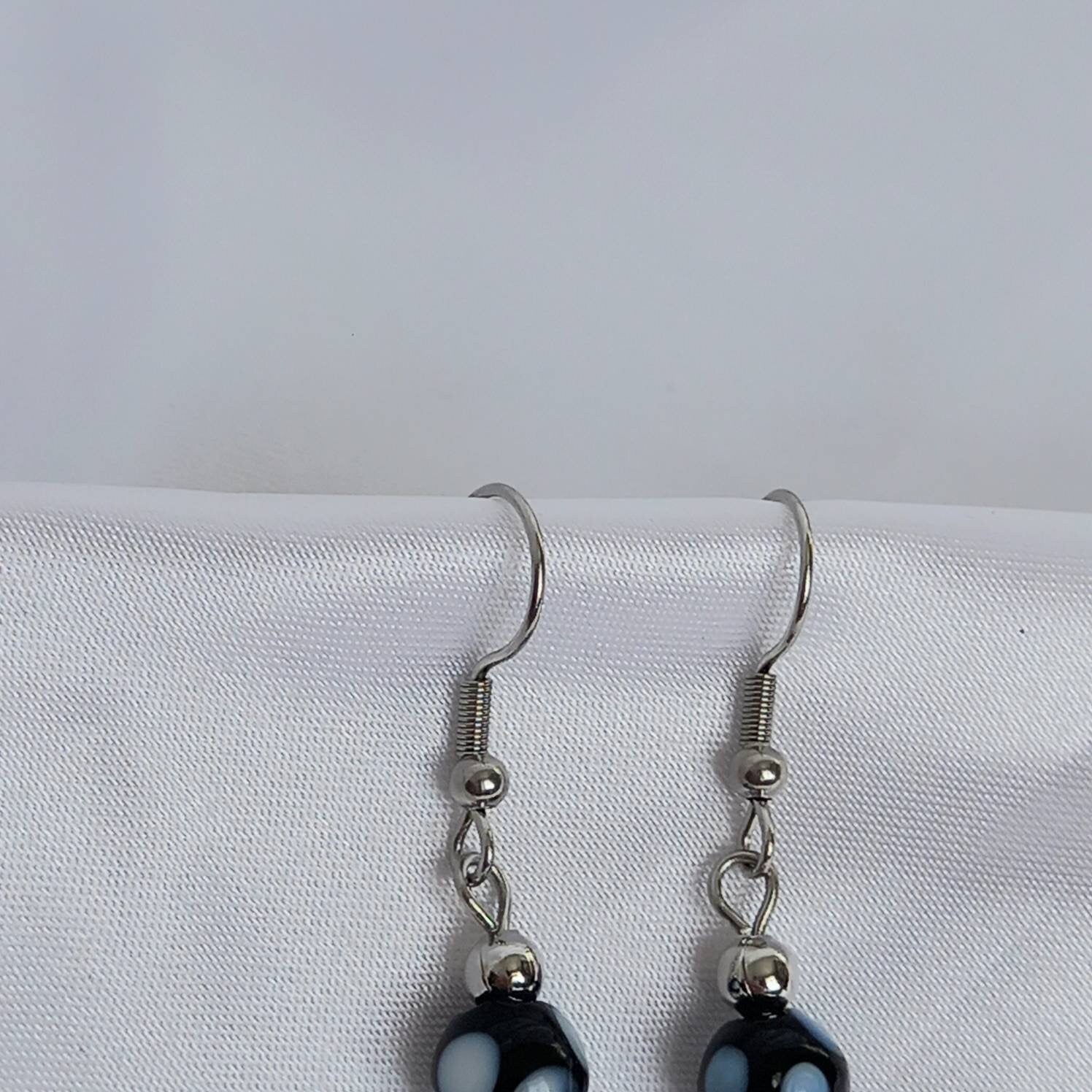Silver Bead Drop Earrings - Spotty Bead Earrings,Spotty Bead Jewellery,Beaded Earrings In The UK,Beaded Jewellery,Long Drop Earrings