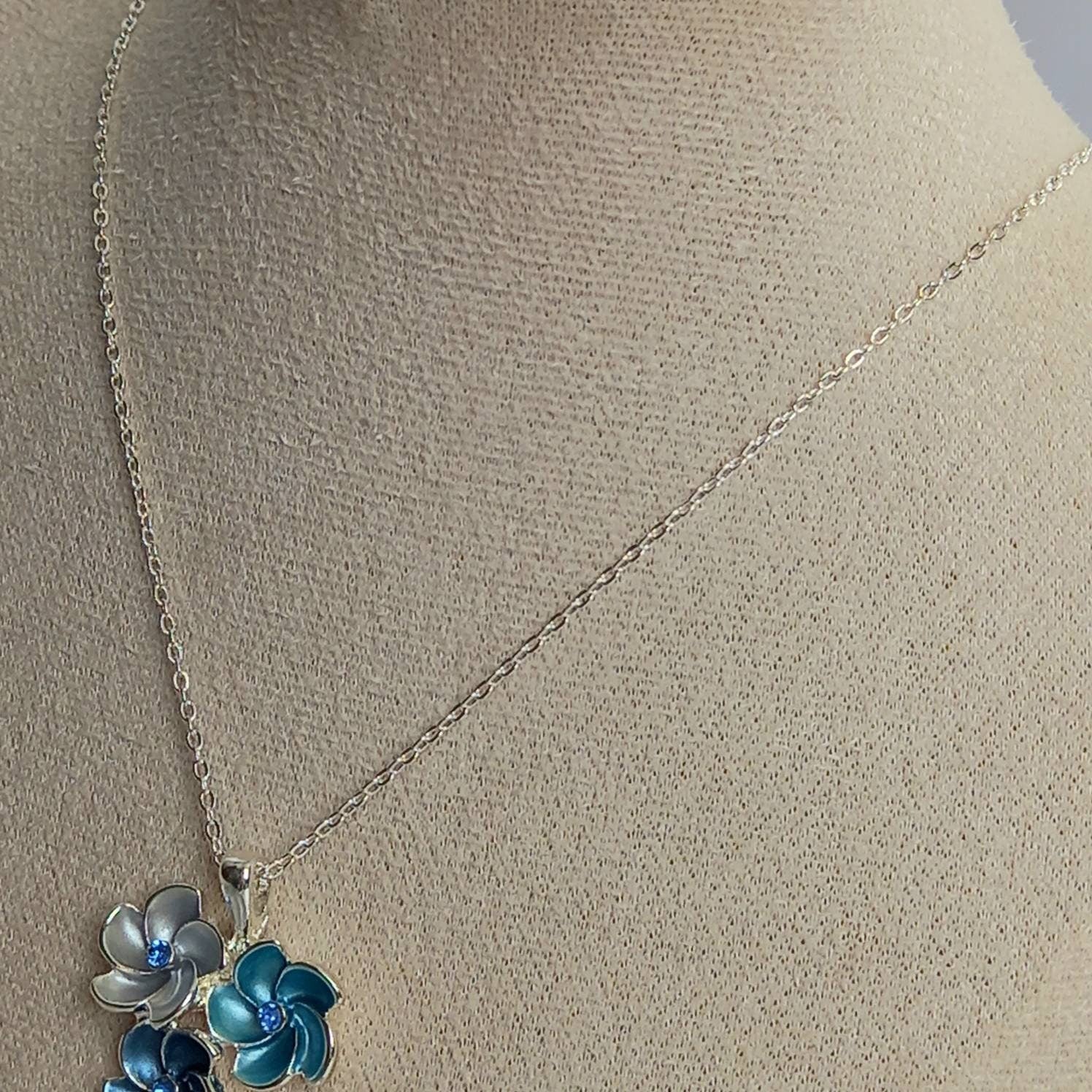 Silver & Blue Flower Necklace - Silver Necklaces In The UK,Retro Flower Necklace,Silver Jewellery In The UK,Blue Flower Necklaces In The UK
