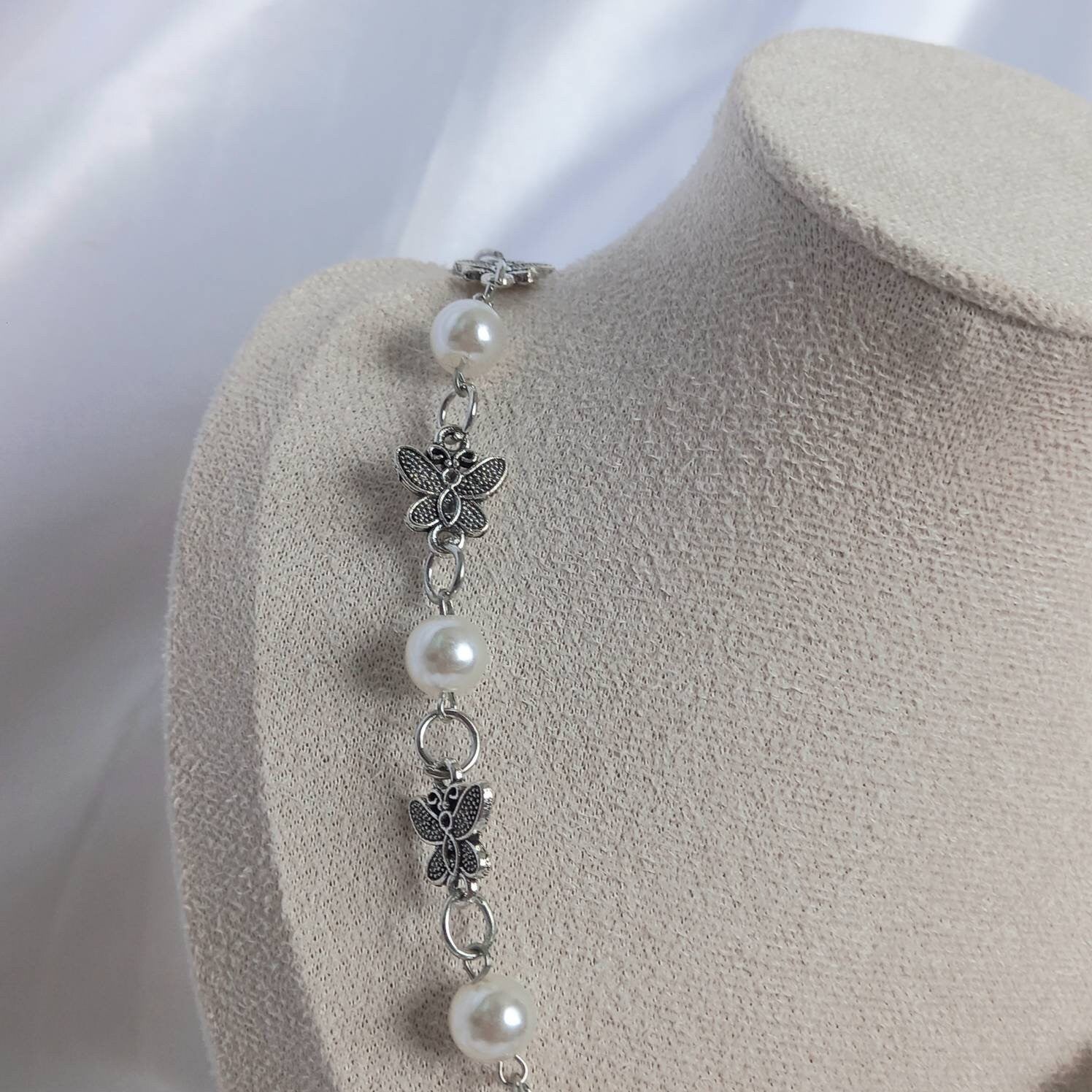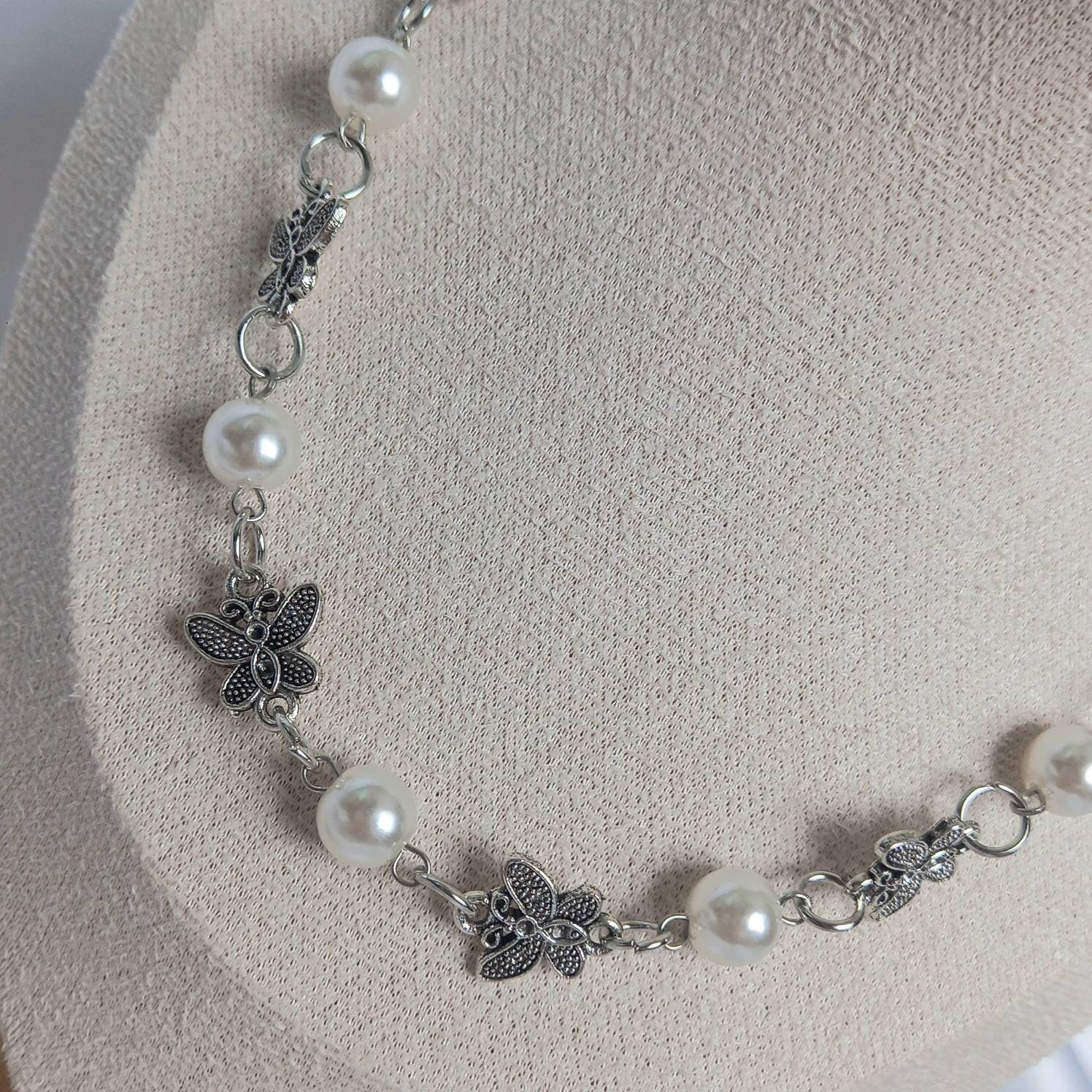 Silver Butterfly Chain Necklace-Silver Butterfly Necklace,Silver Necklaces In The UK, Silver Jewellery In The UK,Butterflies,Pearl Necklaces