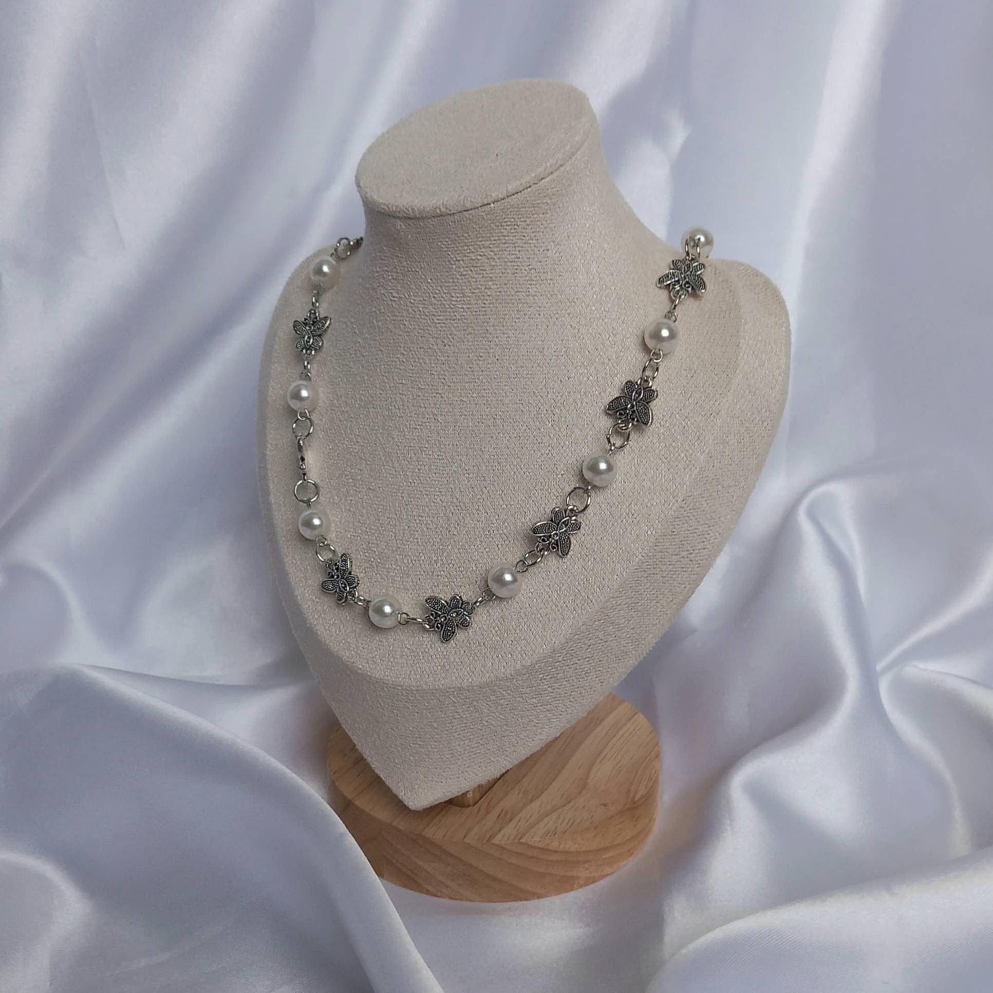 Don't miss out on this beautiful silver faux pearl chain necklace. It works with a large variety of looks and add a bit of sparkle to your outfit.