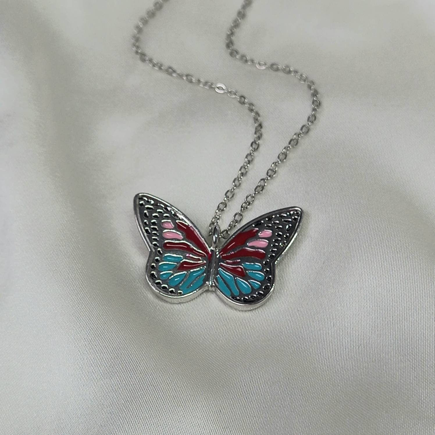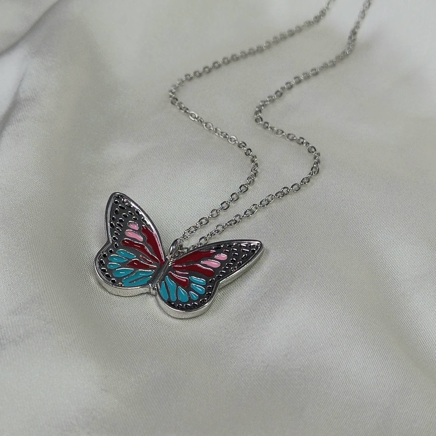 Silver Butterfly Charm Necklace - Chain Necklaces,Pink & Blue Butterfly Necklace,Silver Necklaces In The UK, Silver Jewellery In The UK