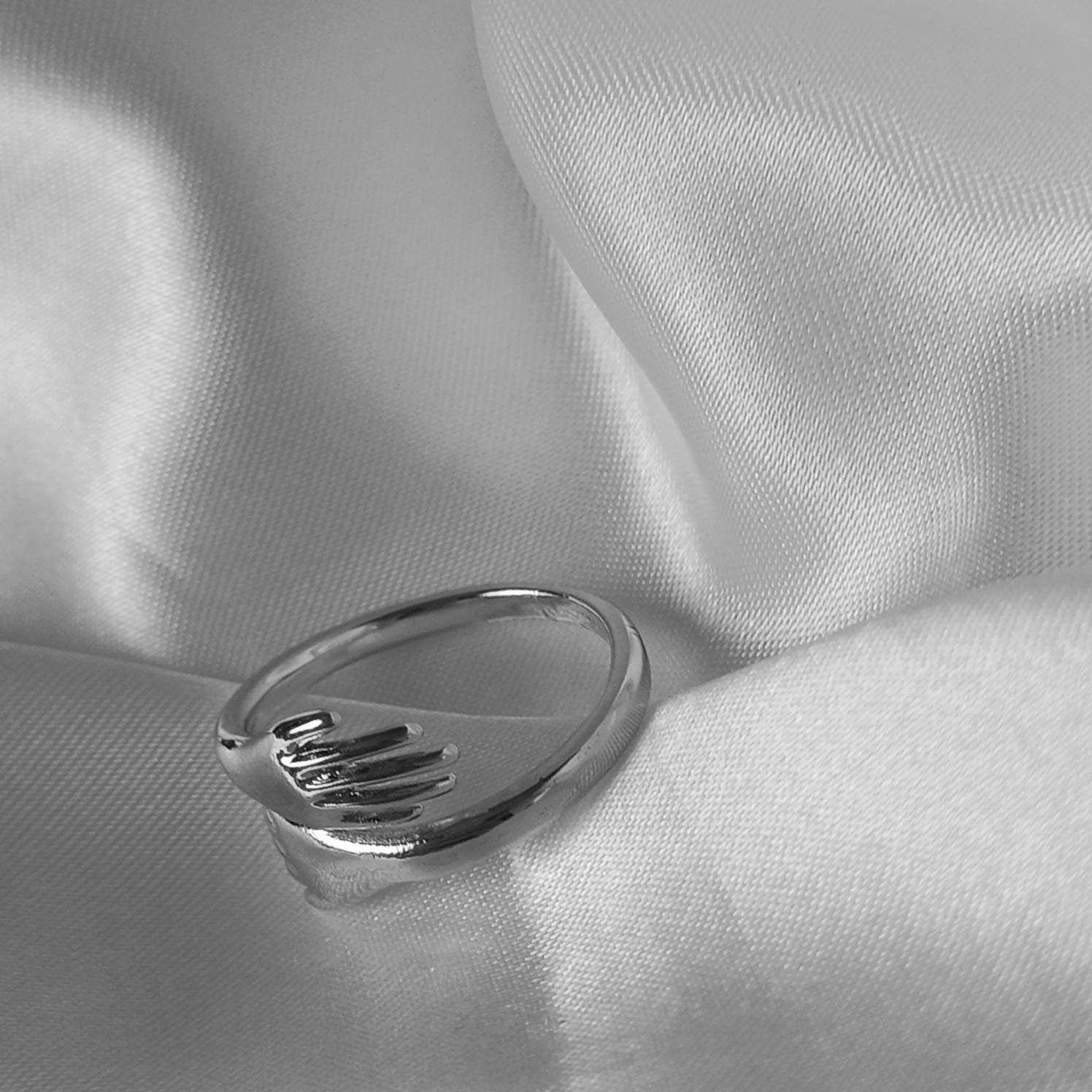 Silver Plated Hands Ring - Silver Hug Ring,Silver Rings In The UK,Hugging Hand Ring,Silver Minimalist Ring,Friendship,Wrap Adjustable Ring