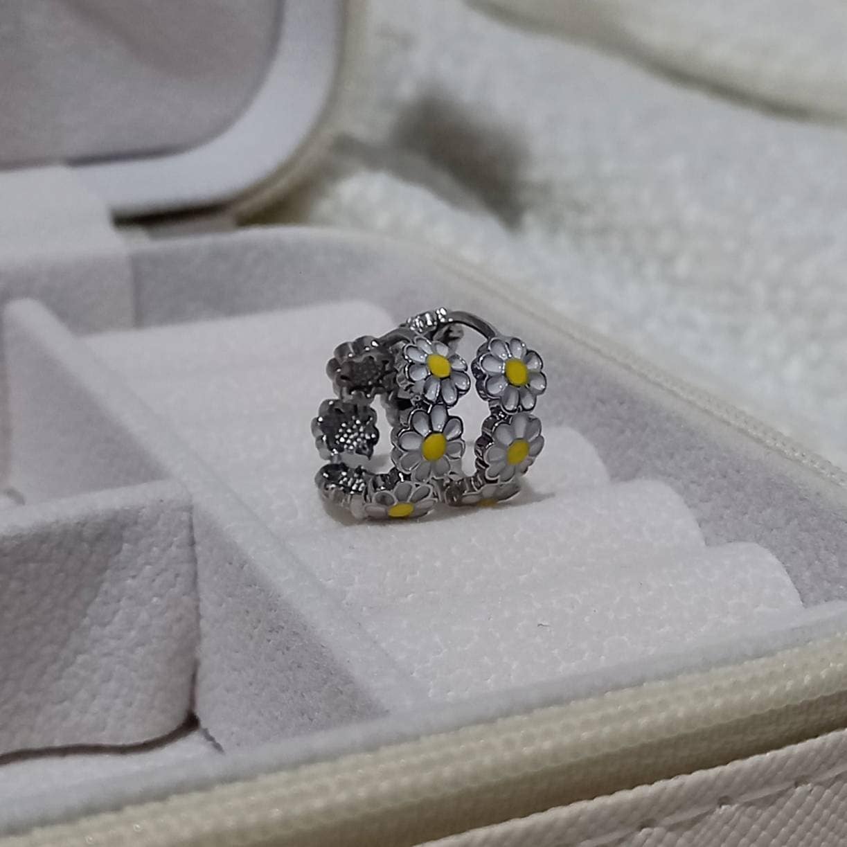 Don't miss out on these beautiful silver plated retro flower hoop earrings. They work with a large variety of looks and add a bit of sparkle to your outfit.
