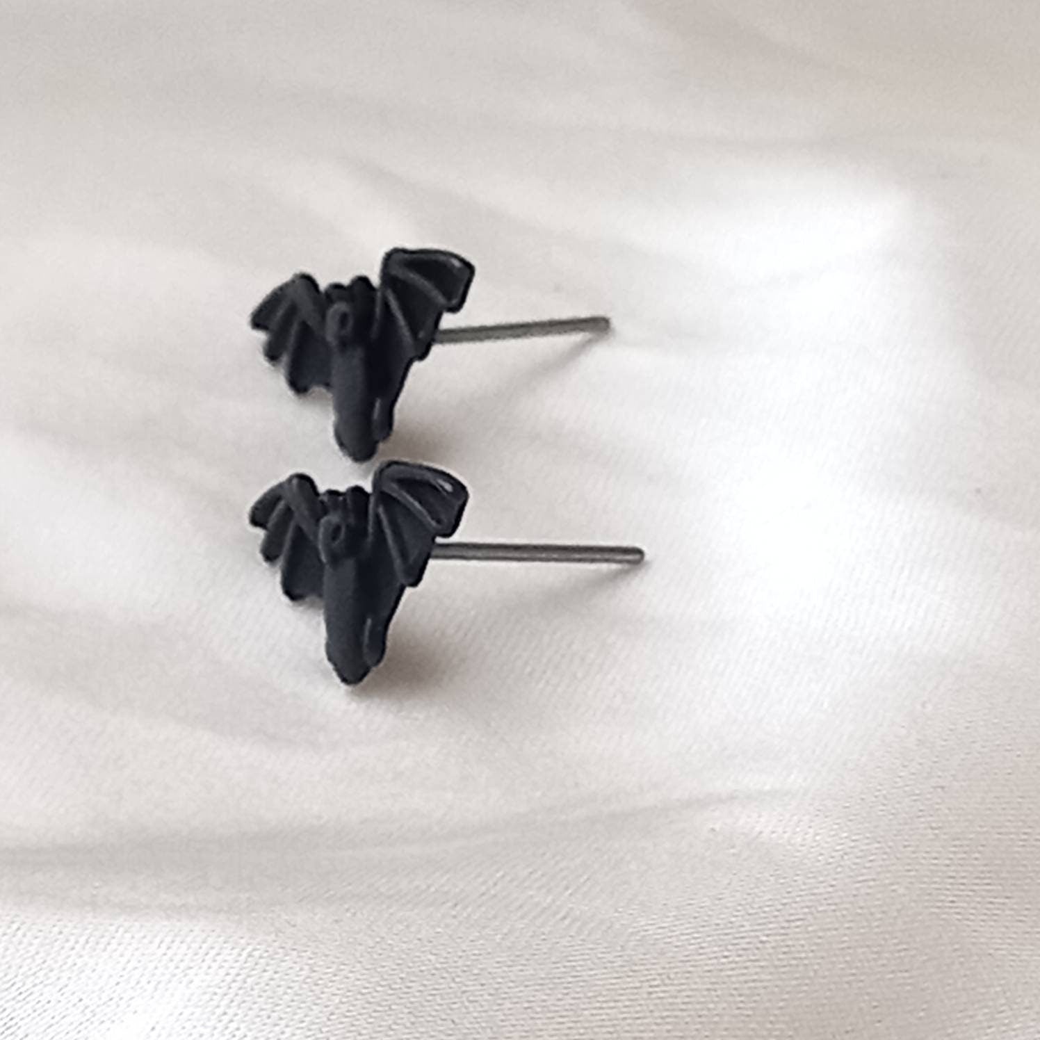 Don't miss out on this black bat stud earrings! It works with a large variety of looks and add a bit of sparkle to your outfit.