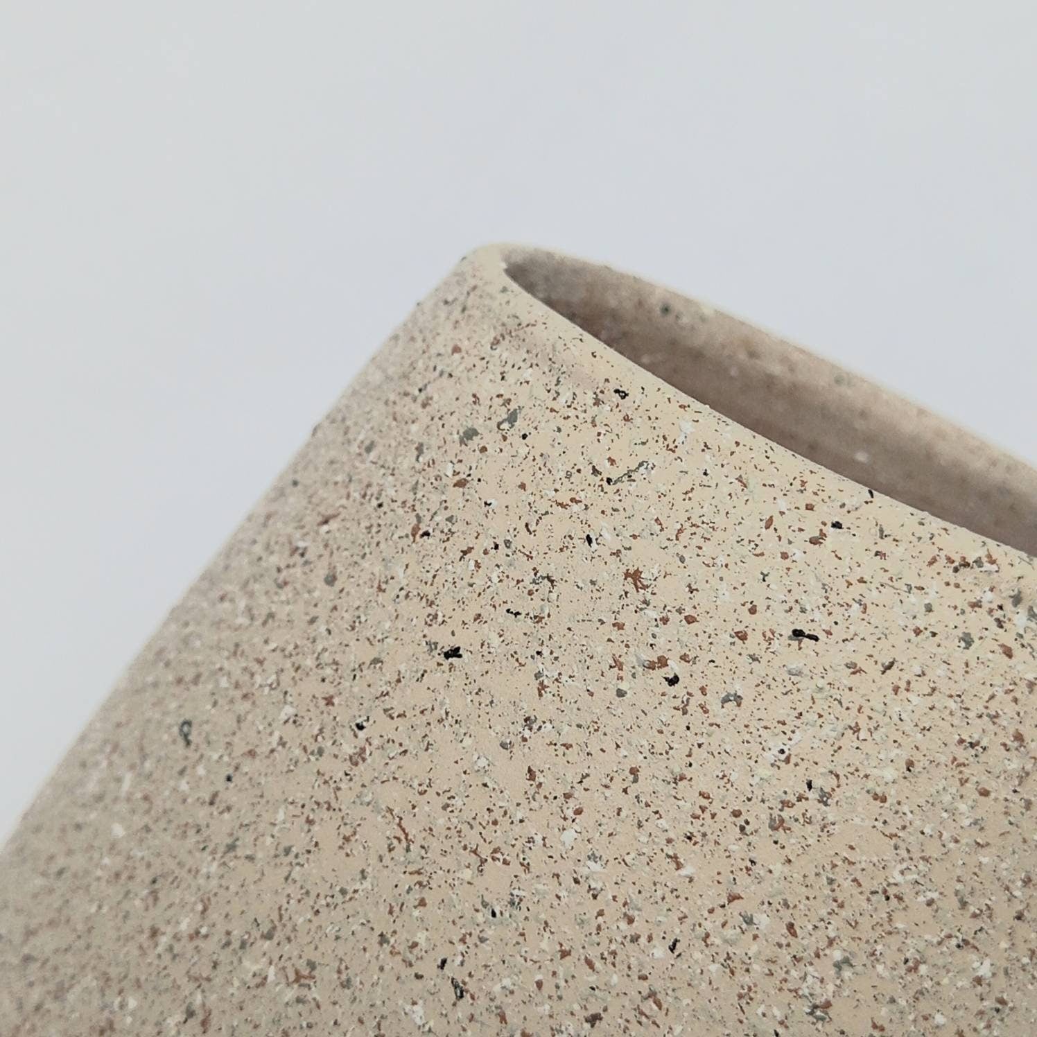 This is a beautiful glass vase with a textured hand painted stone effect finish. The neutral vase will go with any decor and add something a bit different to any room.