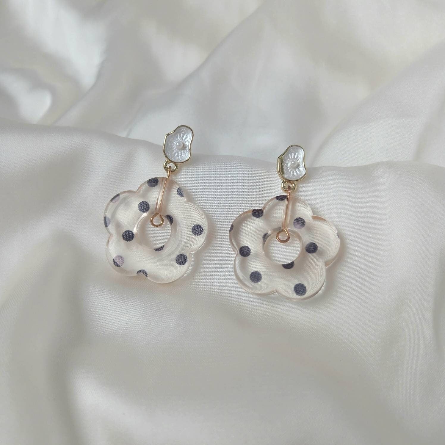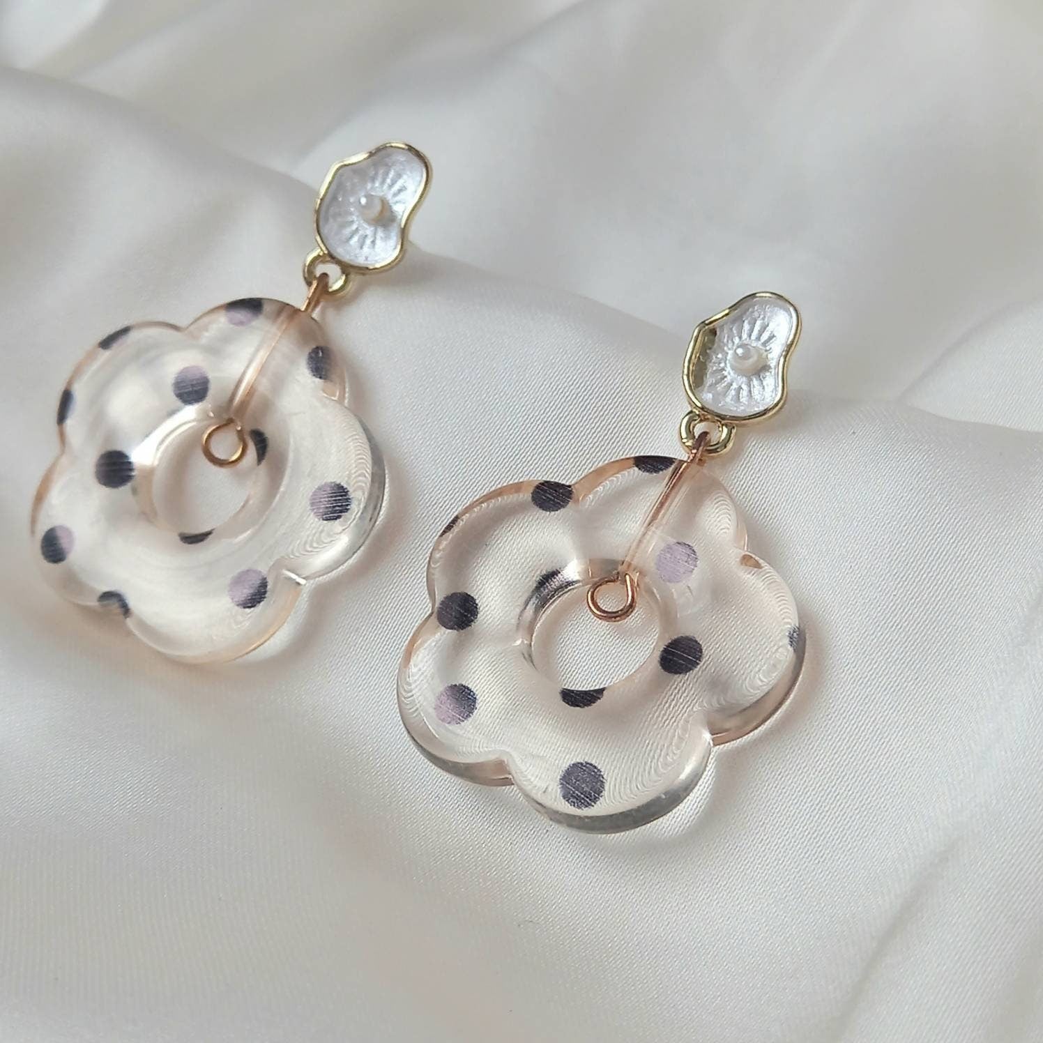 Spotty Flower Drop Earrings - Flower Earrings In The UK,Flower Jewlellery In The UK,Retro Earrings,70's Earrings,Spotty Earrings, Floral