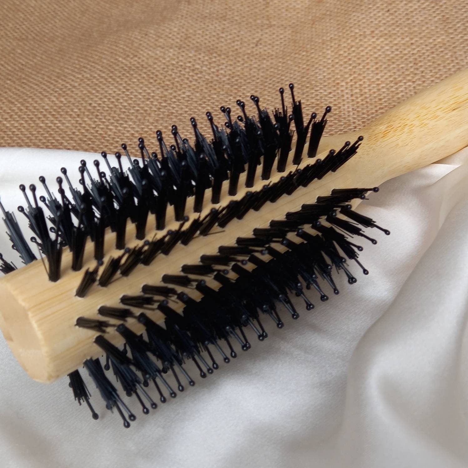 Our bamboo hair brushes have an eco friendly cylinder design with a vented cushion base. The base keeps air pressure balanced and allows air flow for daily massages with the brush stimulating hair growth. The bamboo bristles are gentle and durable they massage the scalp and simulate blood flowwhich results in healthier hair.