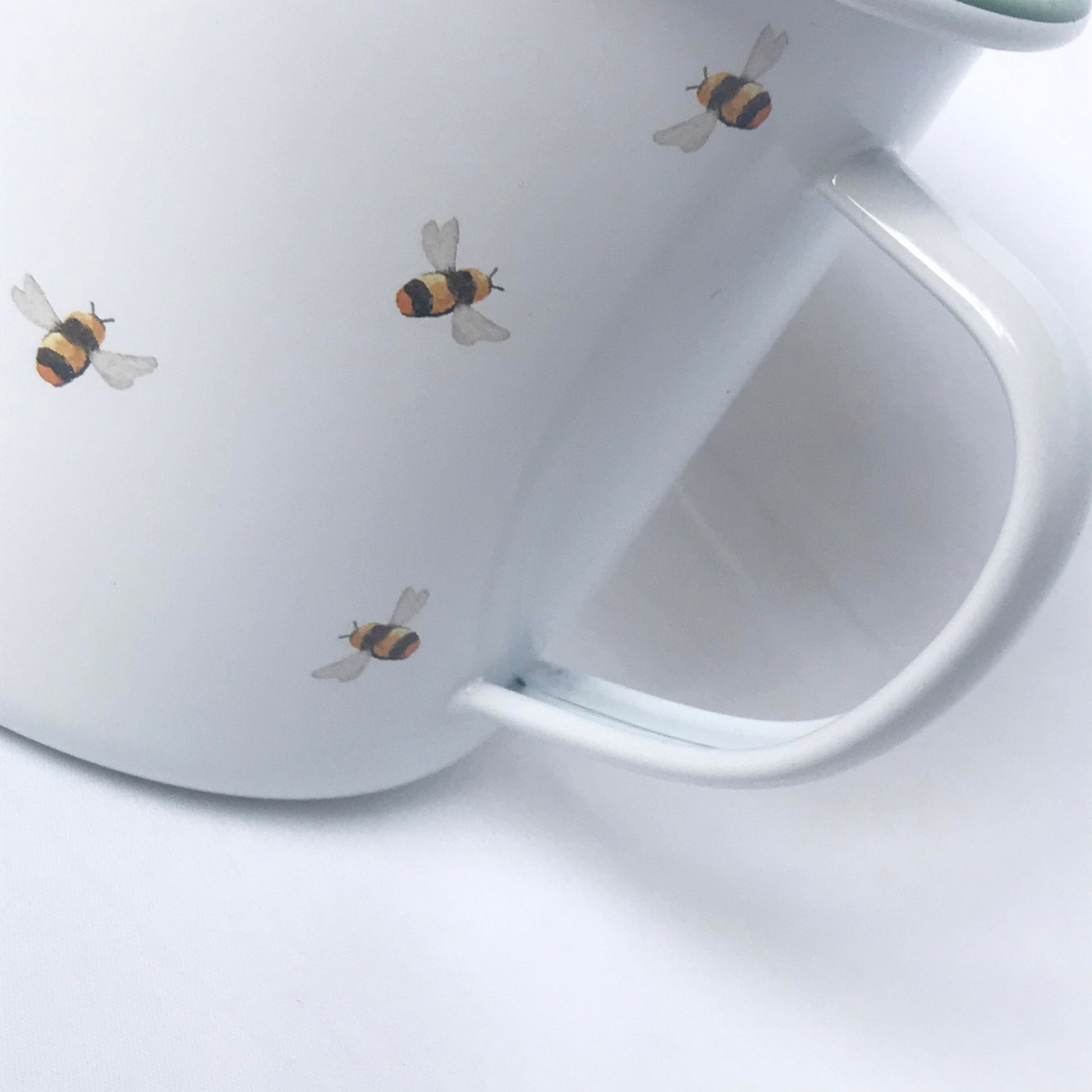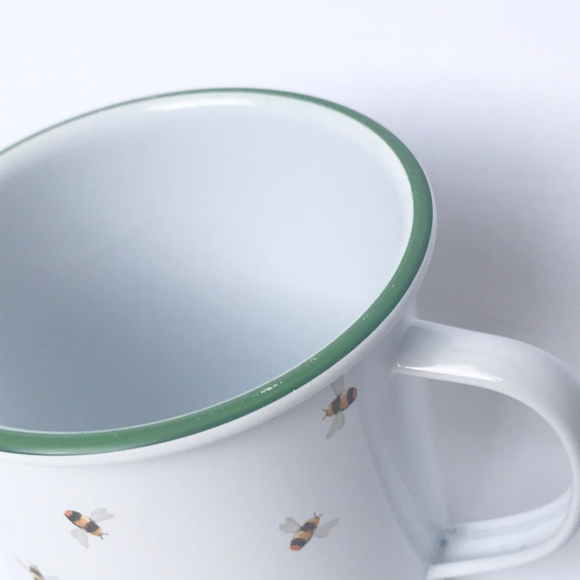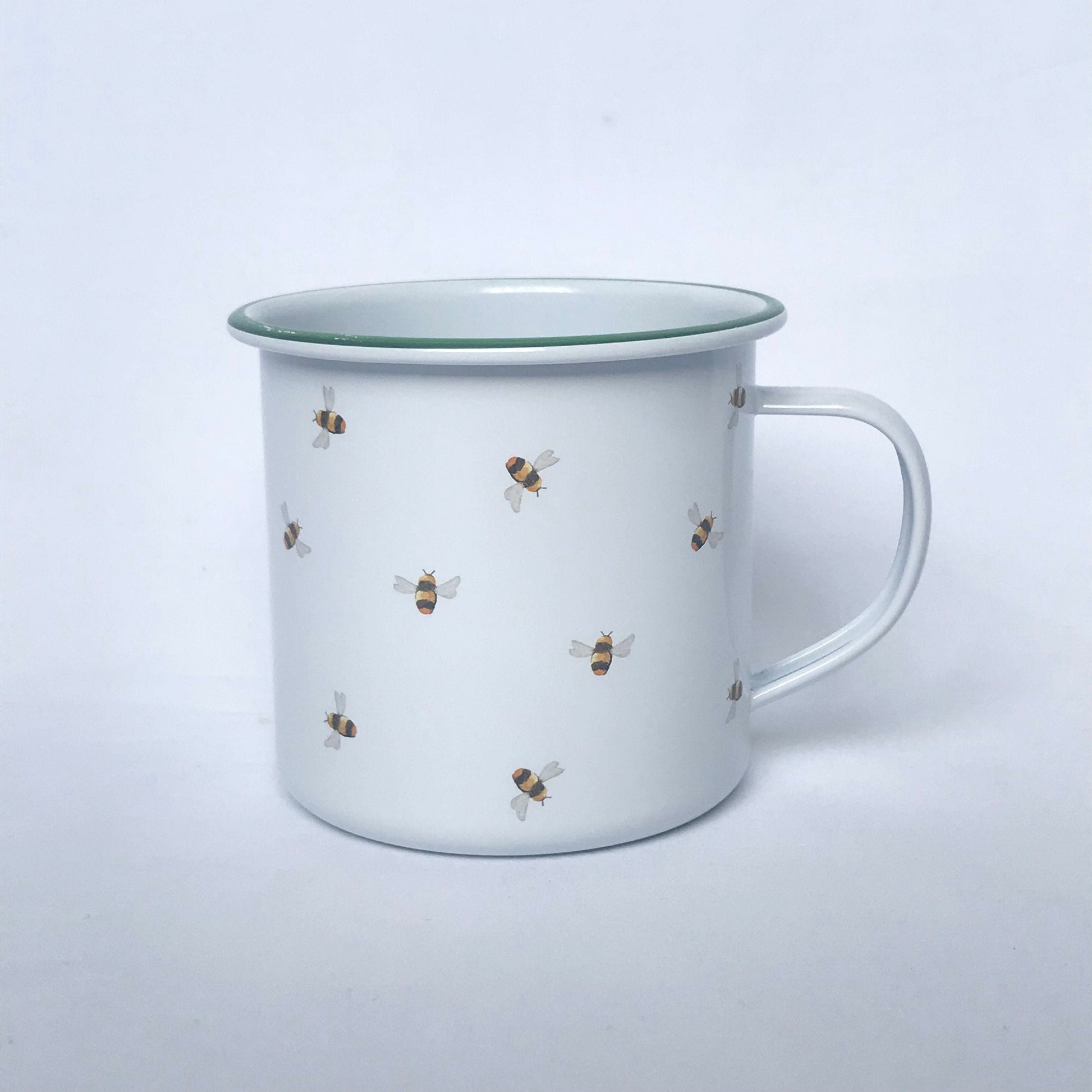 White Bumble Bee Design Tin Mug - White Mug, Bee Mug, Coffee Cup, Gifts For Her, Camping Mug, Garden Mug, Cute Mug, Bee Design Cup