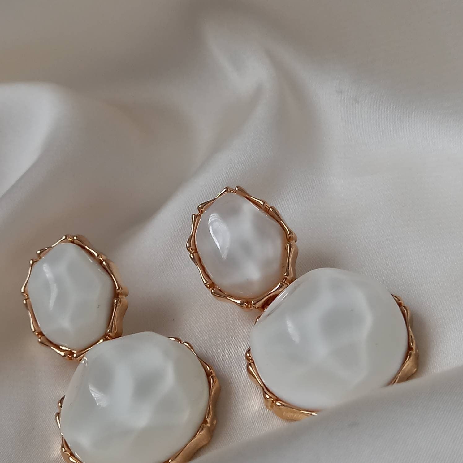 Don't miss out on this beautiful white & gold oval drop earrings. They work with a large variety of looks and add a bit of sparkle to your outfit.